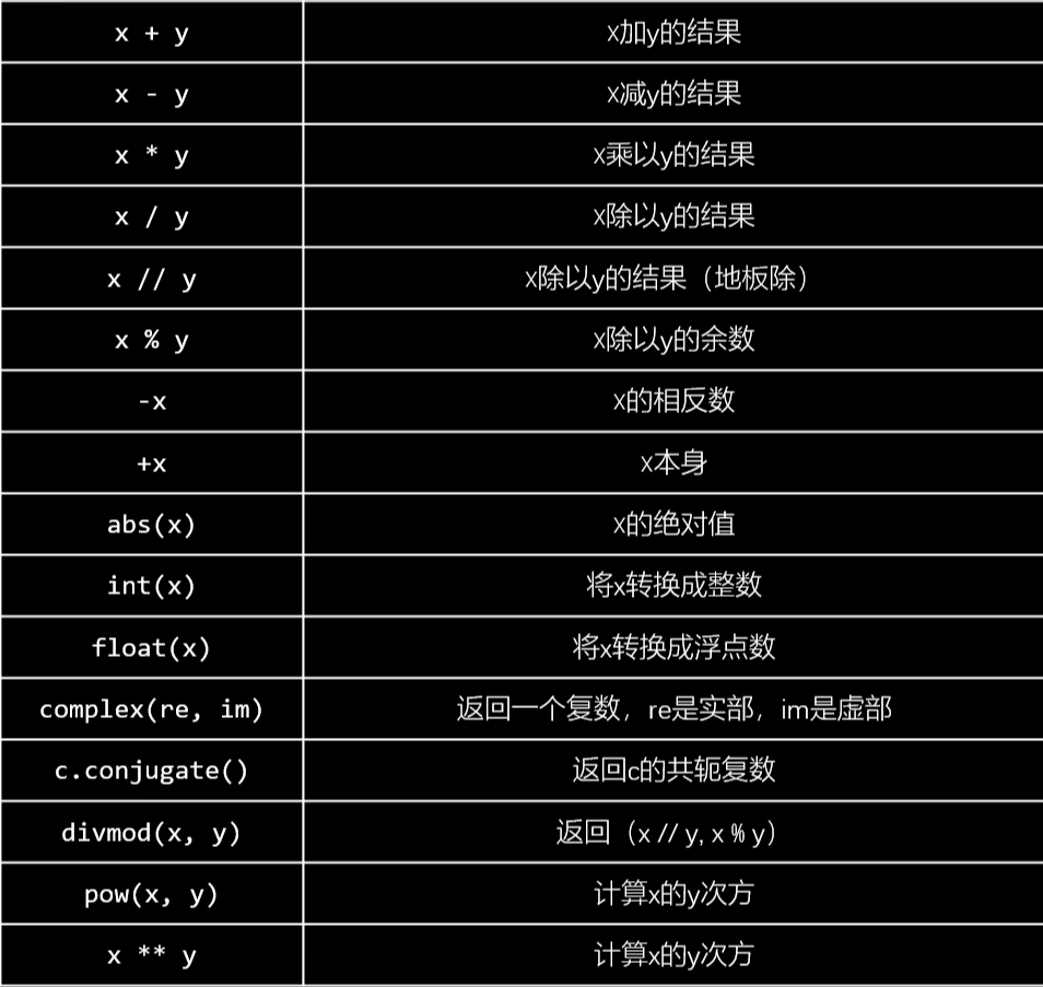 整数长度不受限制;采用IEEE754的标准存储浮点数,有误差,可以用 decimal 模块;复数的实部和虚部是以浮点数的形式存放的,x.real x.imag;