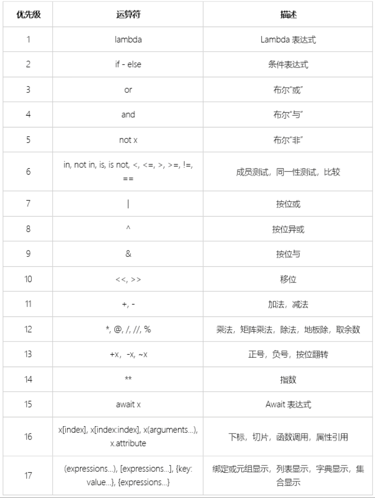 逻辑运算符:and, or, not ,优先级为 not, and, or