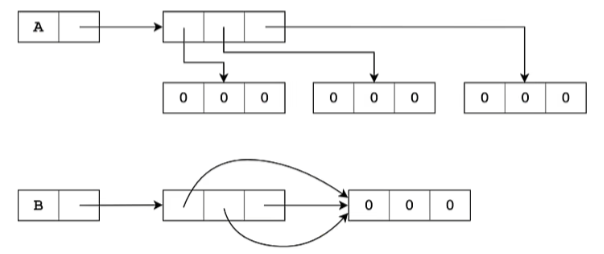 1 2 3 4 5 6 7 8 9 10 11 12 13 14 15 16 17 18 19 20 21 22 23 24 matrix = [[1 , 2 , 3 ], [4 , 5 , 6 ], [7 , 8 , 9 ]] for i in matrix: for j in i: print (j, end=" " ) print () matrix[0 ][0 ] matrix[1 ][2 ] B = [[0 ] * 3 ] * 3 B[1 ][1 ] = 1 B [[0 , 1 , 0 ], [0 , 1 , 0 ], [0 , 1 , 0 ]] lists = [[]] * 3 lists[0 ].append(3 ) lists [[3 ], [3 ], [3 ]] for i in range (3 ): A[i] = [0 ] * 3 A = [[0 ] * 3 for i in range (3 )]