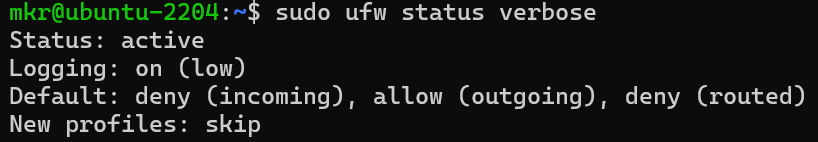 sudo ufw allow ssh   # 等价于 sudo ufw allow 22/tcp