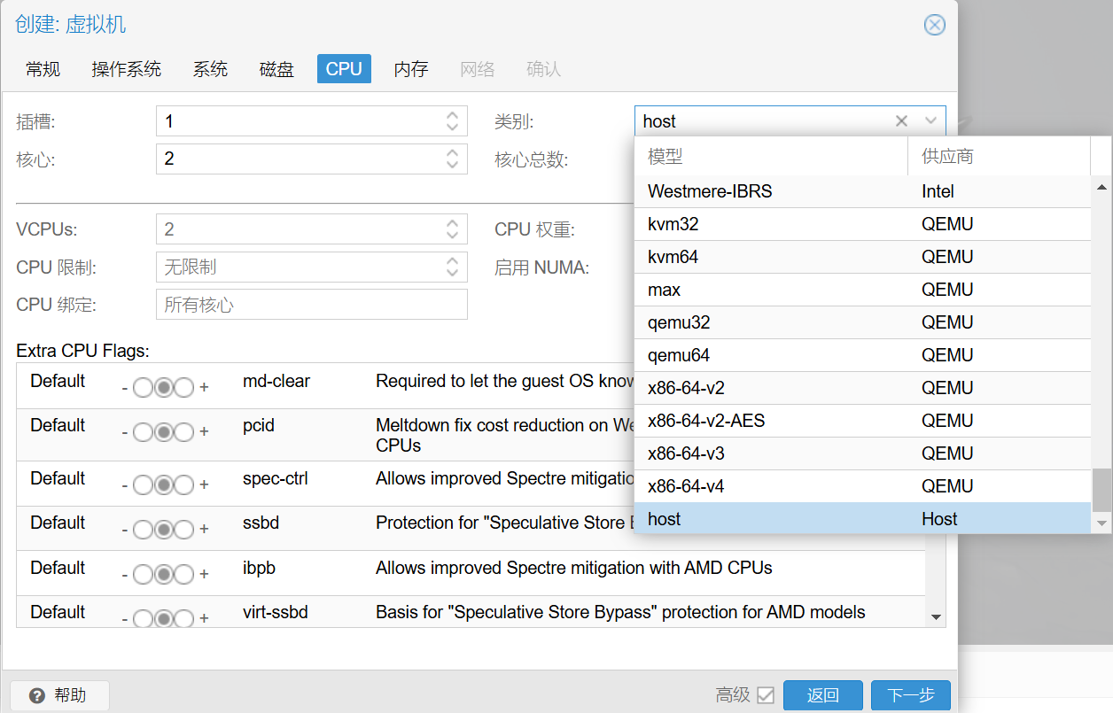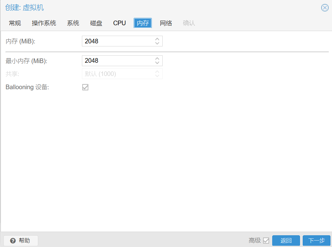 Ballooning设备:Ballooning的意思是膨胀,这个选项的作用是让PVE动态地调整虚拟机运行时使用的内存大小。虚拟机需要安装Ballooning驱动,不然也不起作用。Linux很早就默认自带Ballooning驱动了。Windows需要额外安装驱动,并且可能会降低性能,PVE官方建议Win虚拟机关闭这个选项。