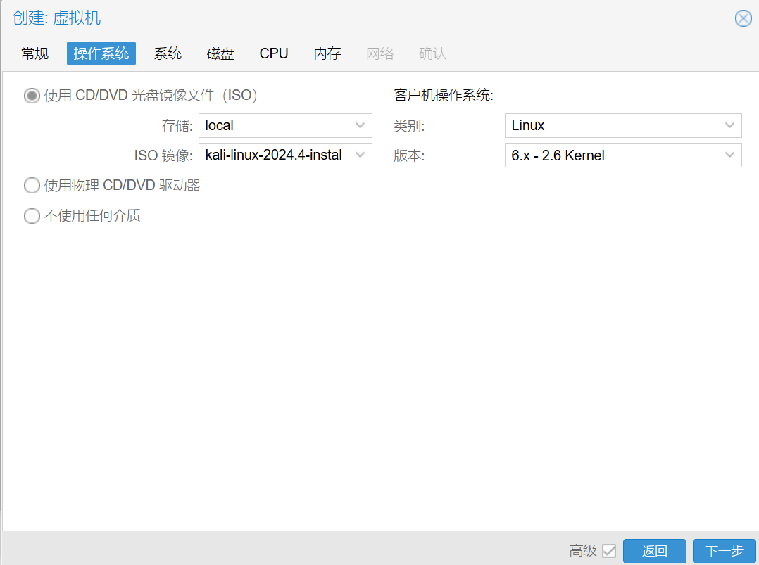 将ISO镜像上传至pve,在选项ISO 镜像中选择要安装的系统