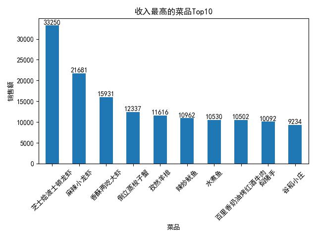 由图可知,芝士烩波士顿龙虾和麻辣小龙虾的销售额远高于其他菜品。