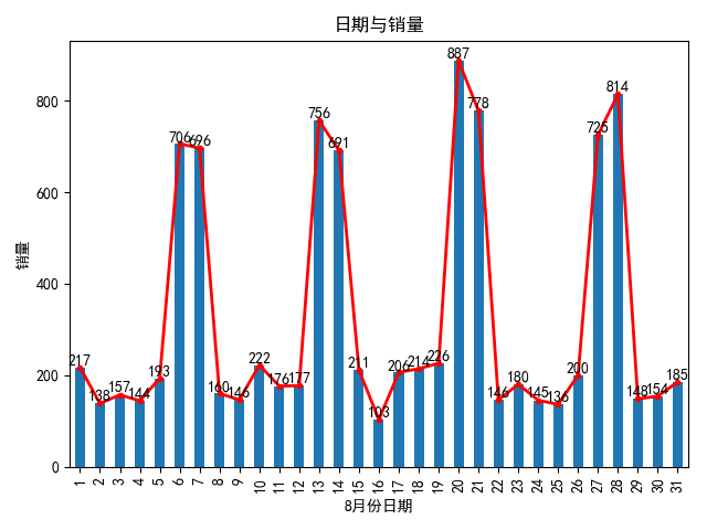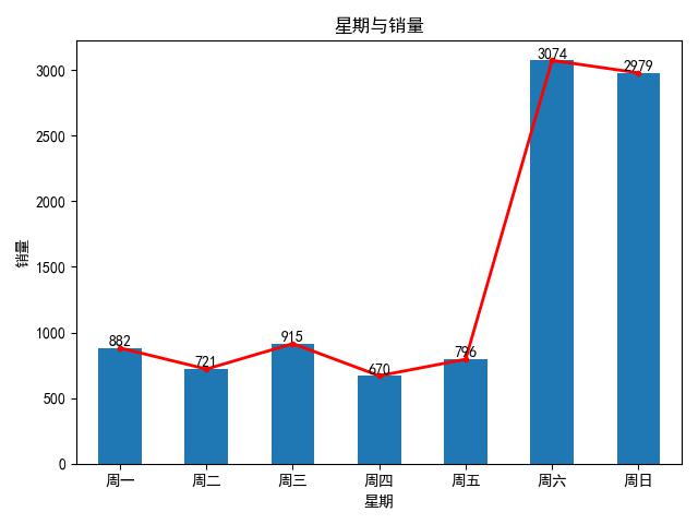 按星期分组后发现,周末的销量远高于周一到周五的销量。