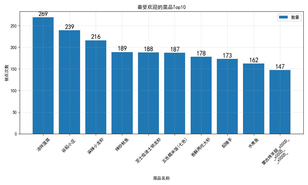 除去白饭/大碗、白饭/小碗(两者销量在前十名),销量前十的菜品如下: